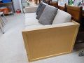 Hyväkuntoinen, istuintyynyt pesty, pientä kulumaa.